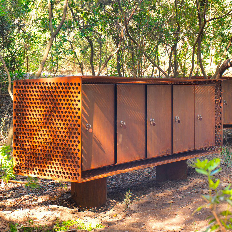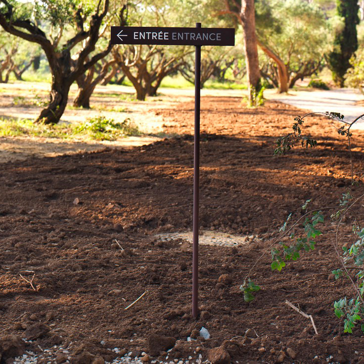 Sur l’île de Porquerolles, pour la Fondation Carmignac, nous avons conçu les espaces d’accueil et d’exposition, ainsi que des mobiliers en acier Corten intégrés au paysage.