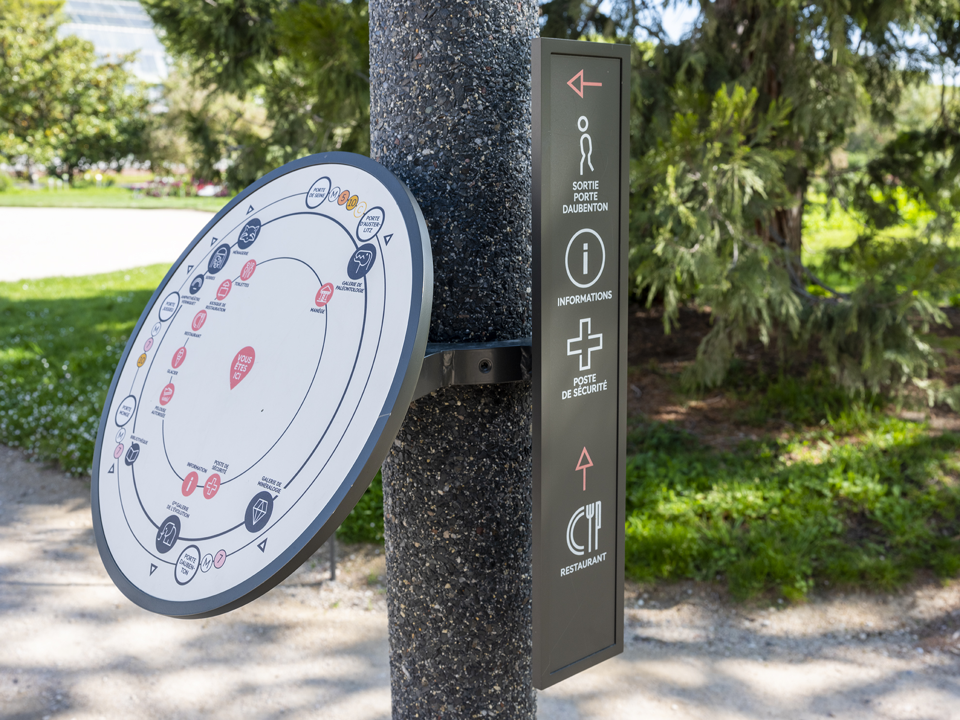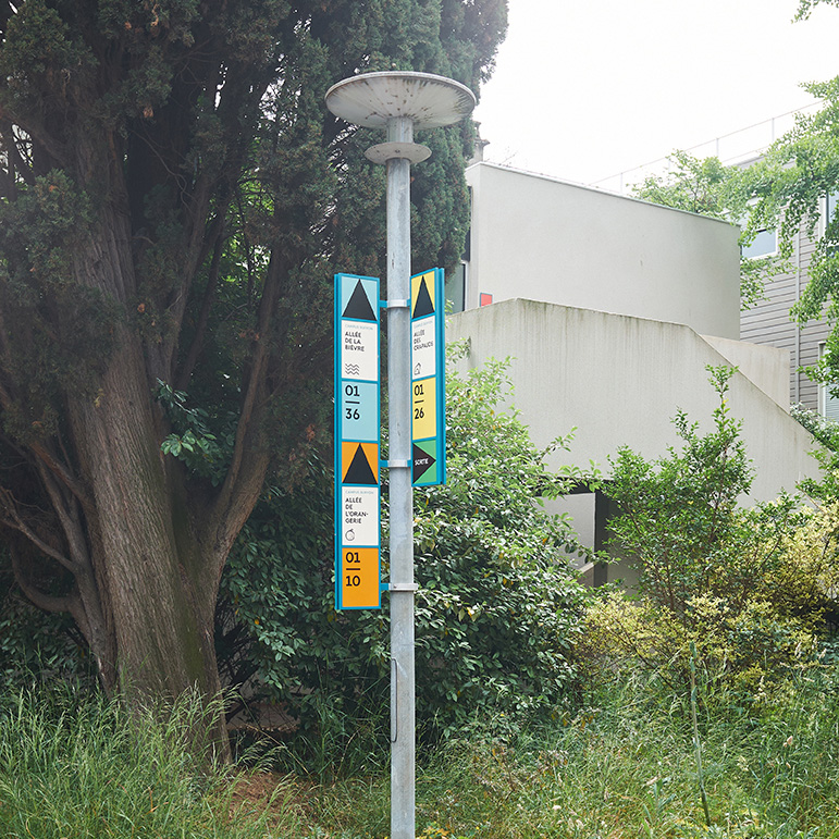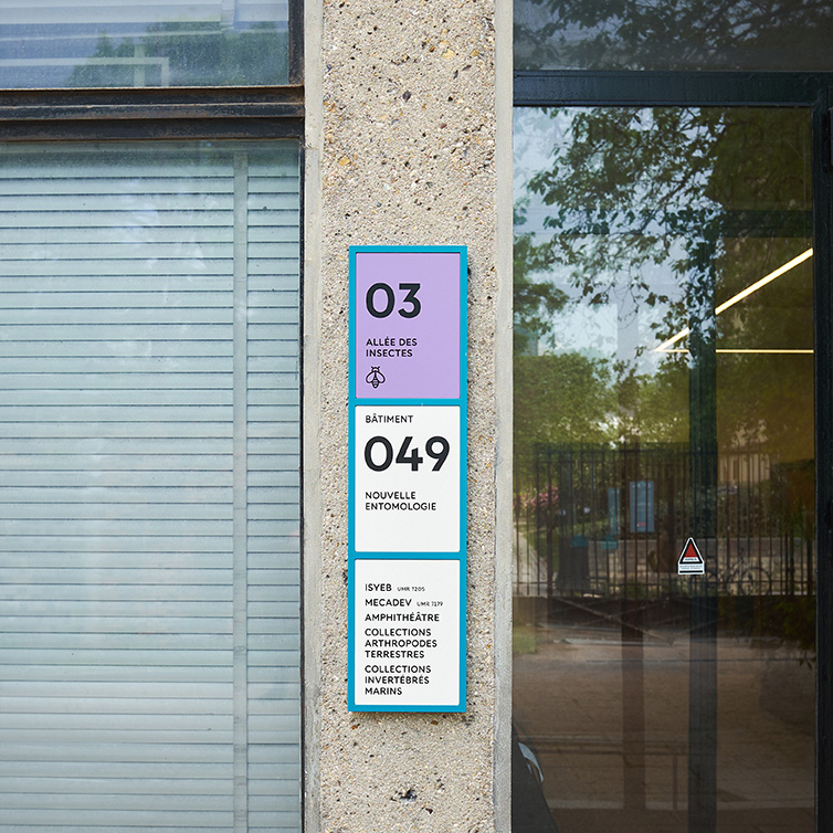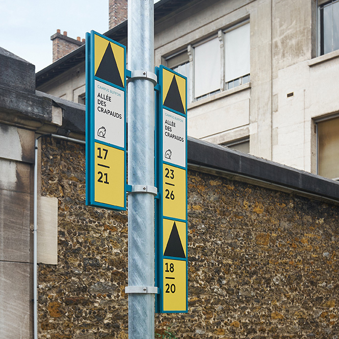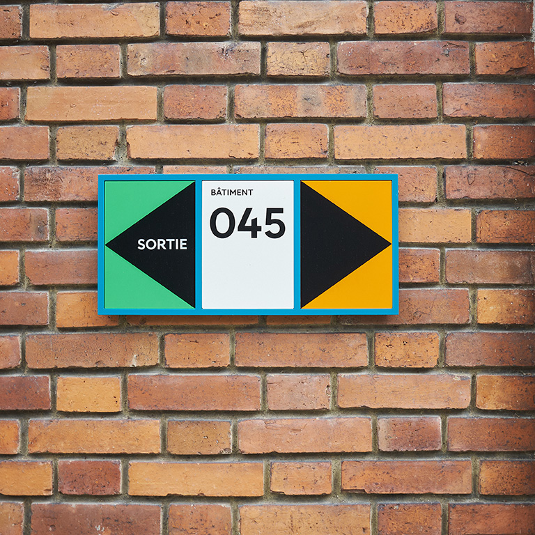 Nous avons conçu la signalétique du Campus Buffon, intégrée au site, modulaire et durable, déclinée selon les usages et l’accessibilité.